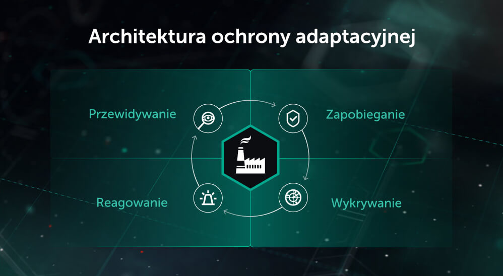 Podejście holistyczne do cyberbezpieczeństwa przemysłowego – od prognozy związanych z potencjalnymi wektorami ataków i powierzchniami nowych ataków, przez wyspecjalizowane technologie przemysłowe w zakresie zapobiegania i wykrywania, po proaktywną reakcję na cyberincydenty — to najwyższa gwarancja, że Twoja firma będzie działać w sposób bezpieczny i niezakłócony. Kaspersky Industrial Cybersecurity zapewnia narzędzia zwiększające poziom ochrony na wszystkich etapach cyklu życia w modelu adaptacyjnym bezpieczeństwa.